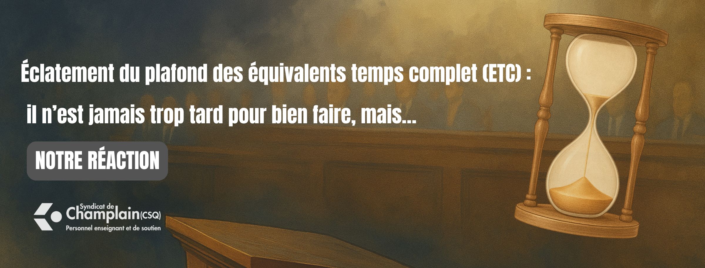 Près d’un an après la mise en place du gel d’embauche chez le personnel scolaire, la ministre Sonia Lebel fait enfin éclater le plafond des équivalents temps complet, qui a causé tant de tort. Nous ne pouvons que saluer ce nouvel élan de réceptivité dont elle fait preuve face aux considérations des acteurs du milieu de l’éducation. Cependant, nous devons également faire le constat que cette mesure arrive malheureusement en retard. Effectivement, nous sommes à l’aube du premier bulletin, soit pratiquement deux mois après la rentrée scolaire. Les élèves, notamment ceux ayant des besoins particuliers, ont subi un grand préjudice en étant privés de l’aide dont ils auraient pu bénéficier si cette mesure était arrivée à temps et que les nécessités en termes de recrutement avaient été atteintes.