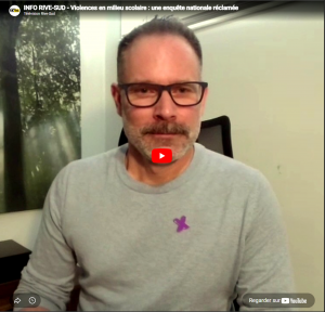 INFO RIVE-SUD – Violences en milieu scolaire : une enquête nationale réclamée 11 mars 2026 Entrevue de Jean-François Guilbault à l’émission Info-Rive-Sud sur la question de la violence en milieu scolaire.