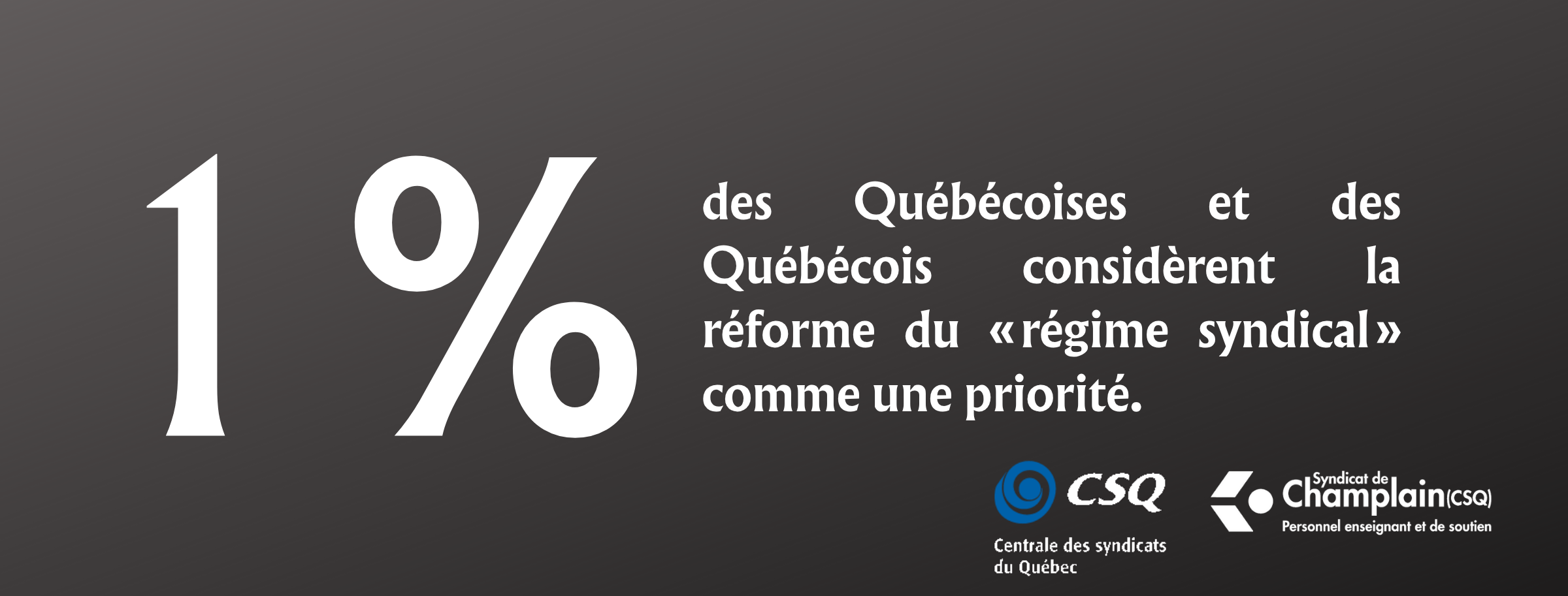 À peine 1 % des Québécoises et des Québécois considèrent la réforme du « régime syndical » comme une priorité. C’est ce…