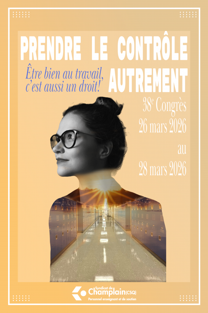 Du 26 au 28 mars prochain, le Syndicat de Champlain tiendra son 38e Congrès, un important rendez-vous pour notre organisation puisque c’est le moment où ensemble, nous nous dotons d’orientations qui guideront les actions de notre syndicat pour le prochain triennat. Ces actions, nous les souhaitons évidemment, le plus possible, ancrées dans notre quotidien. Le contexte postpandémique, le renouvellement de nos contrats de travail en front commun et l’interventionnisme de la CAQ sont venus colorer le dernier triennat, bousculant ainsi nos tâches quotidiennes, le climat général de travail et le militantisme syndical.